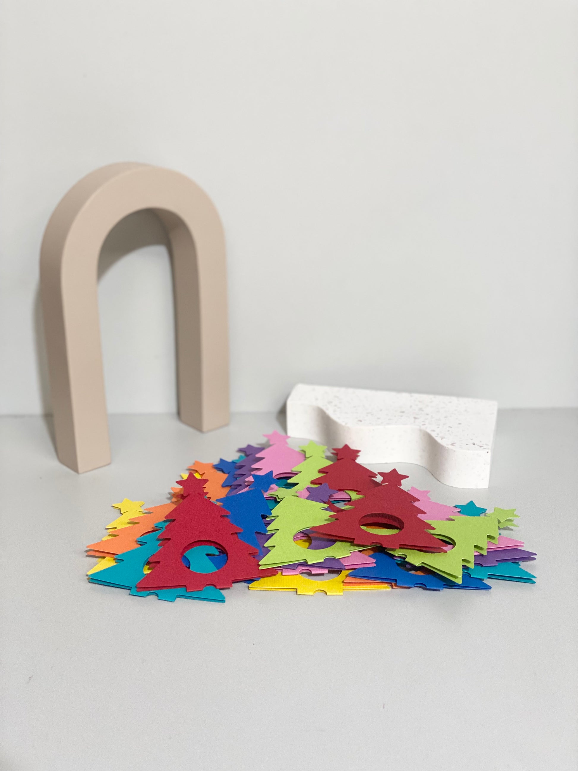 Textured card 'Christmas Tree" Lollipop Holder. 24-pack comes with three of each of the following colours; Red, Green, Blue, Aqua, Yellow, Orange, Pink, Purple.
