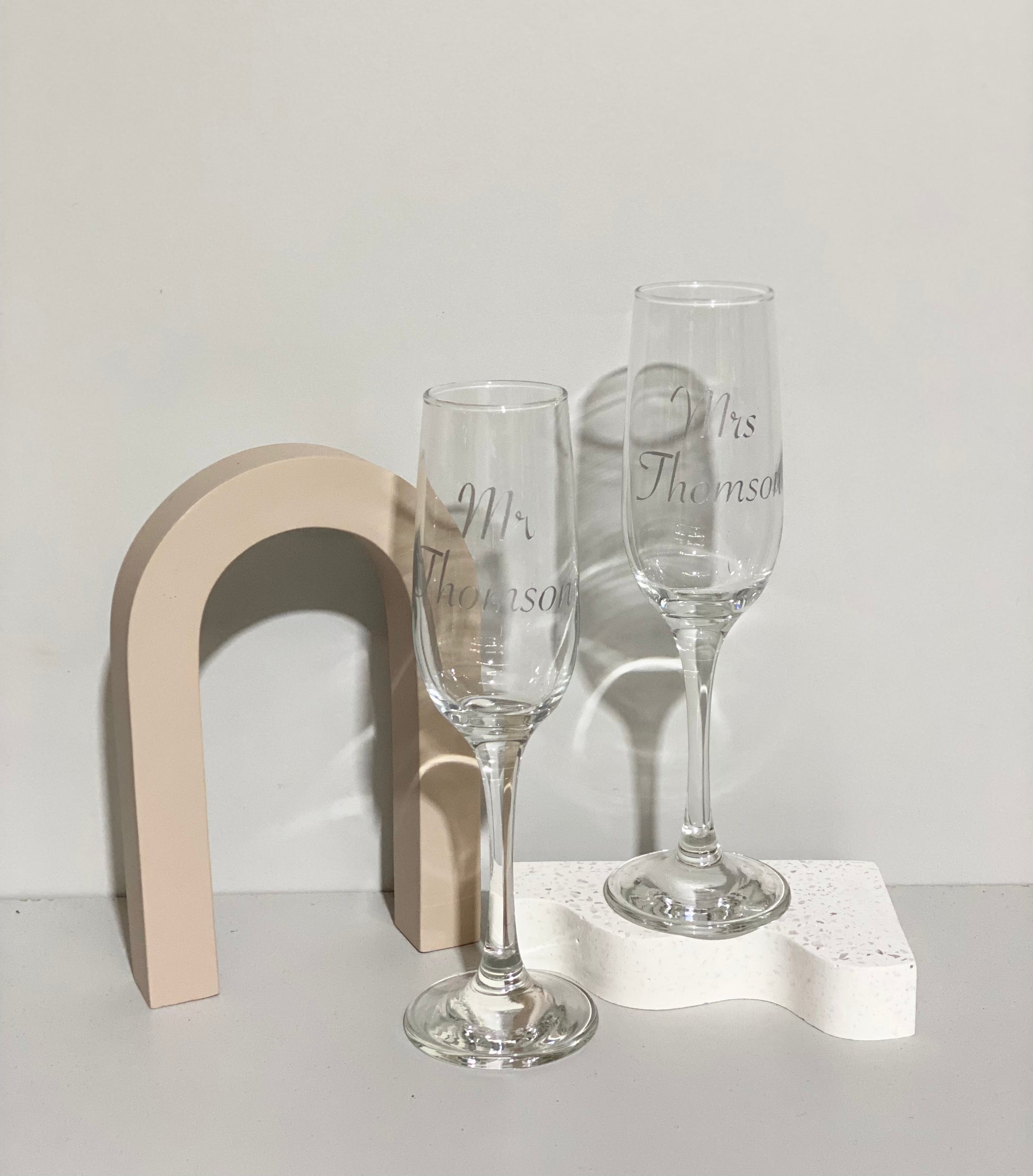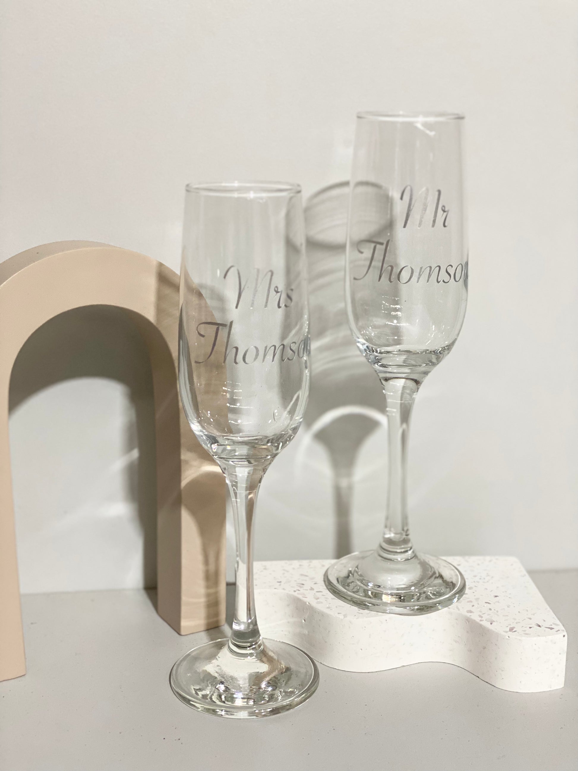 Champagne flute with customised vinyl.