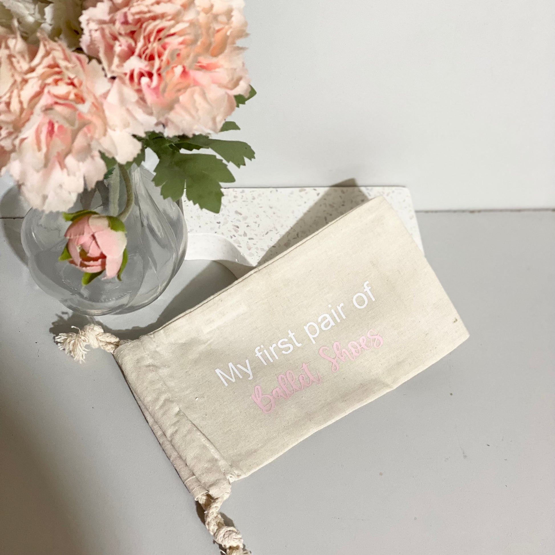 'My First Ballet Shoes' Canvas Drawstring Bag